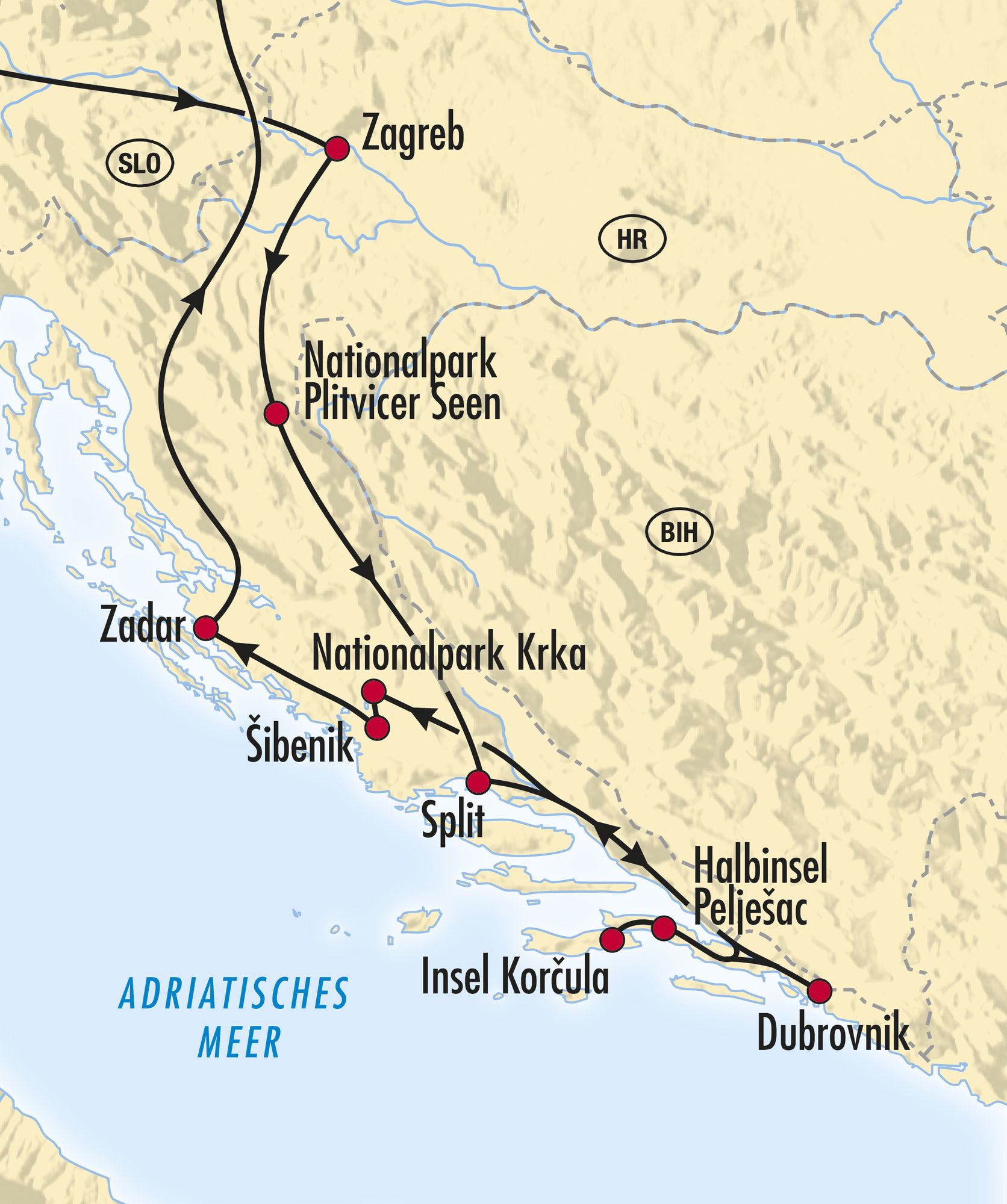 Grandiose Naturwunder, zerklüftete Gebirge, orientalische Städte und malerische Küstenstreifen – eine Region, so vielschichtig wie ihre Bevölkerung. Die Wunden in den Städten sind verheilt – die unvergleichliche Schönheit der Landschaft ist geblieben. Unsere Rundreise führt Sie in eine Region voller Kontraste mit märchenhaften Seen, karstigen Gebirgen, lieblichen Küstenstreifen und einem Schmelztiegel der unterschiedlichsten Bevölkerungsgruppen. Hier treffen Abendland und Morgenland zusammen. Lassen Sie sich begeistern von der Vielfalt täglich wechselnder Eindrücke und genießen Sie den Erholungsauf­enthalt an der Dalmatinischen Küste.